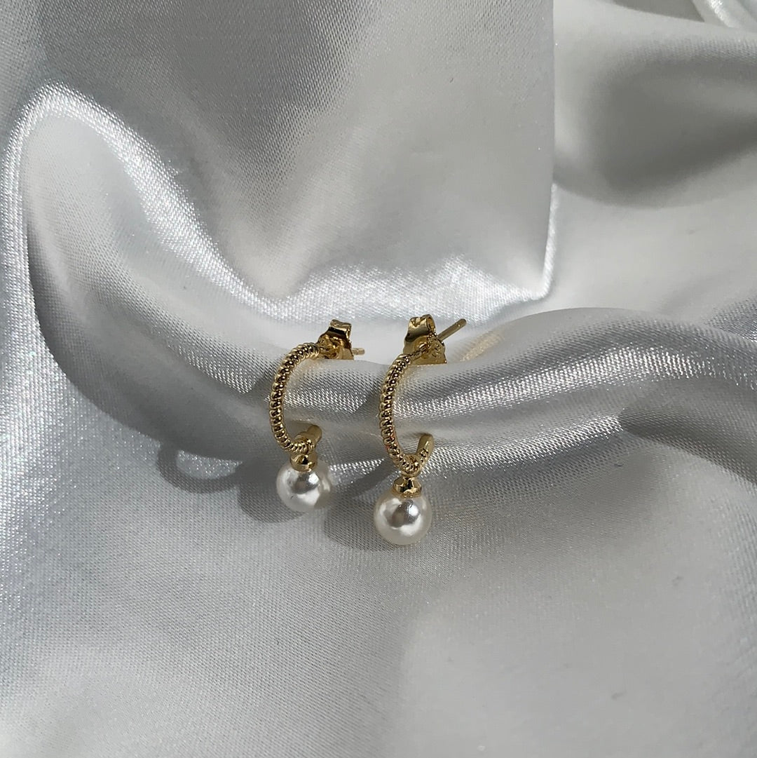 Aretes chapa de oro de 18K con perla.
